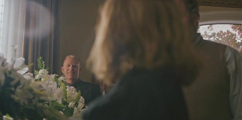 1. 奶奶艾伦葬礼上,面露诡异笑容的男性(葬礼上很多陌生人都是邪教成员)。