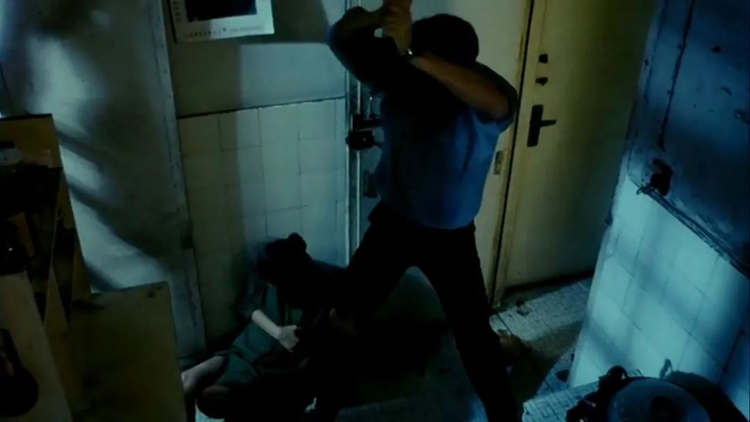 当小兰抱着儿子推门进屋的一刻,手提一把斧头躲在家门后的劲强看准了小兰手中的儿子,突然一斧子砍了下去,电影也在这一刻定格。