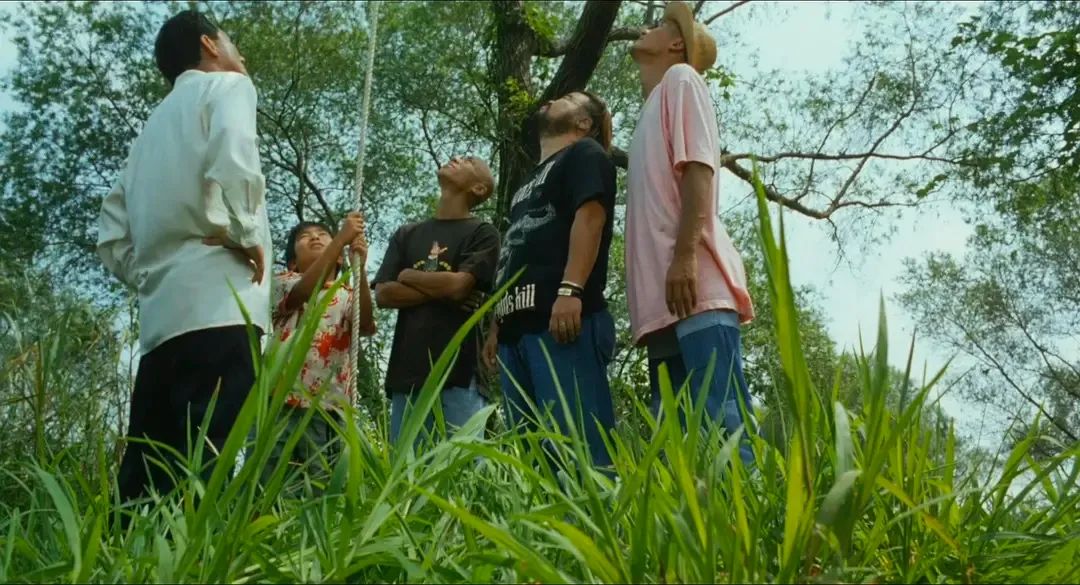 《菊次郎的夏天》全长两小时,在影片中段,即一小时左右,这段情节便已经出现,正男亲眼见证了自己的被抛弃。可实际上,整部影片的铺垫才刚刚完成,之后的内容则是在全力消解这被抛弃。菊次郎是在对抗妻子的诅咒,避免正男将来成为现在的自己,抑或只是想给正男一个尽情玩耍的暑假,影片不做任何深入的、可供心理分析的交代,仅以天使风铃、叔叔陪我玩等几个色彩夸张、充满卡通效果的段落来向前推进叙述。到叔叔跌倒了,正男为挨了揍的菊次郎擦拭血迹,一大一小两个被抛弃者笨拙地互相抚慰,影片的情感再次达到顶峰,同样是笑中带泪。菊次郎这个混蛋的形象愈加丰满,也越来越令人同情。