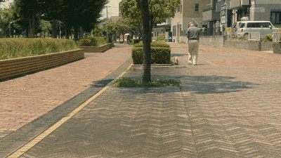 第二幕,是狗换了一棵树拉屎,狗的主人依然不铲,而旁边就是加山儿子死去的地方,地上还有市民摆放的纪念物,早已蒙上灰尘。