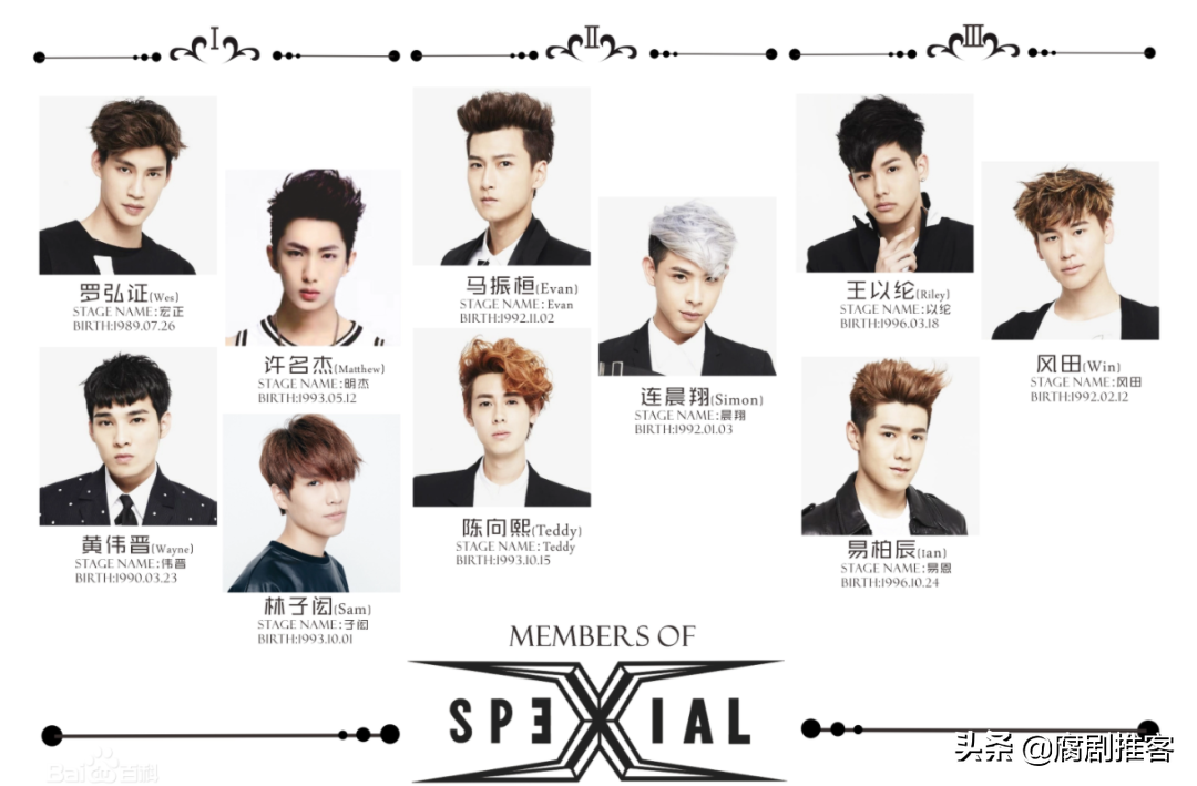 台湾男团spexial最初由罗弘证(队长)、黄伟晋、许名杰、林子闳组成,后来加入连晨翔、马振桓、陈向熙、王以纶、易柏辰、风田、赵志伟、熊梓淇,巅峰时期共有12位成员。后来又有一些人走了,这个男团的团体最后发歌是2018年,感觉目前已经是有点名存实亡,分开发展。