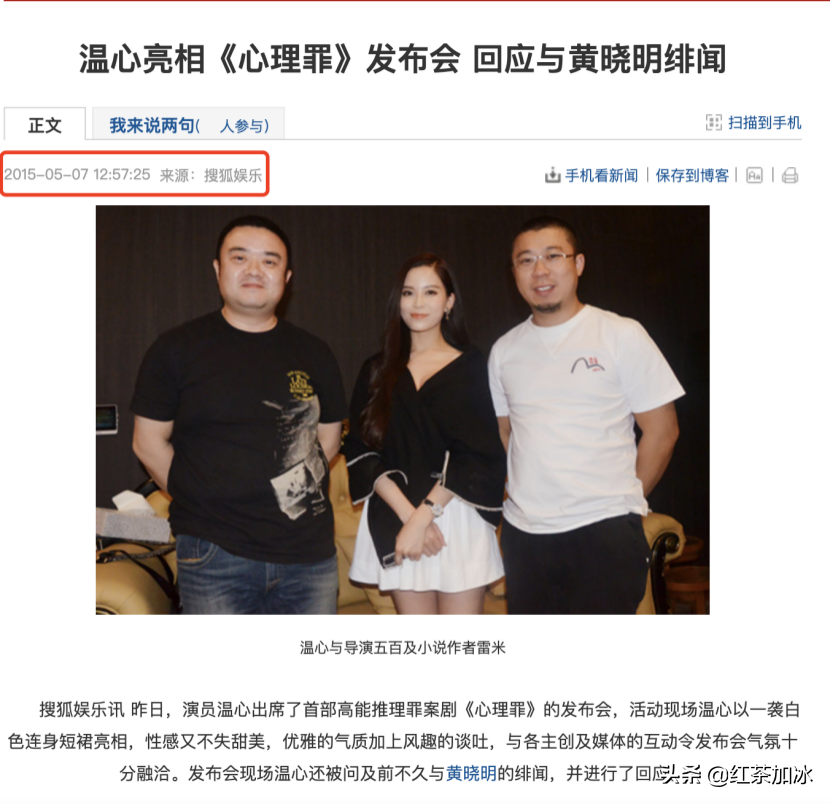 2015年5月6日,她在新剧《心理罪》发布会现场,又突然提起与黄晓明之间的绯闻。
