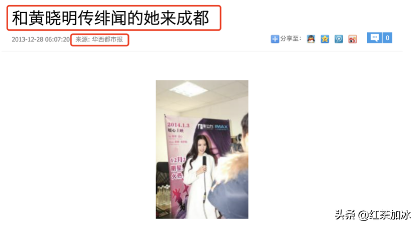 至于事实如何,后来有一个名叫《华西都市报》的媒体宣传她的电影时,用的标题是「和黄晓明传绯闻的她来成都」。