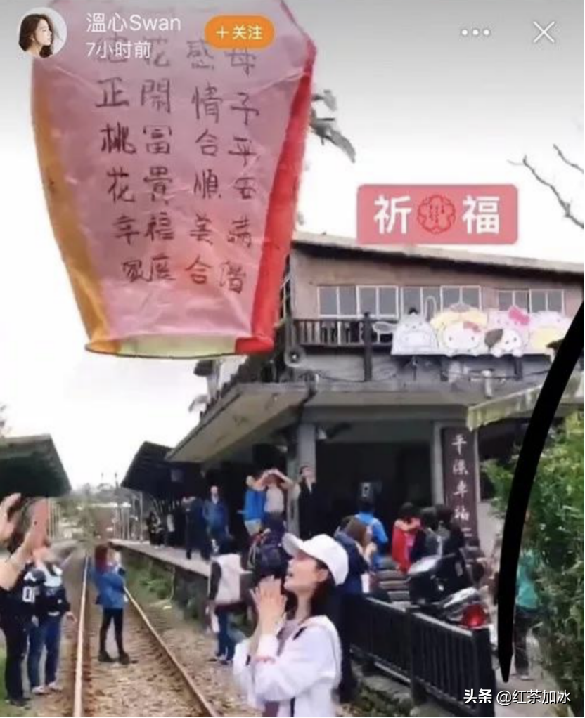 例如官宣恋情没多久,温心便前往台湾祈福,孔明灯上写着“母子平安”的心愿。