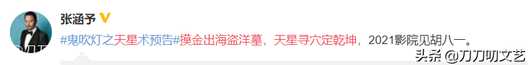《天星术》预告曝光后,张涵予版的胡八一引发热议,有人觉得“张涵予一身正气,但胡八一是有些油嘴滑舌的”,还有人觉得“张涵予什么都好,就是缺了点胡八一身上的书生气”。