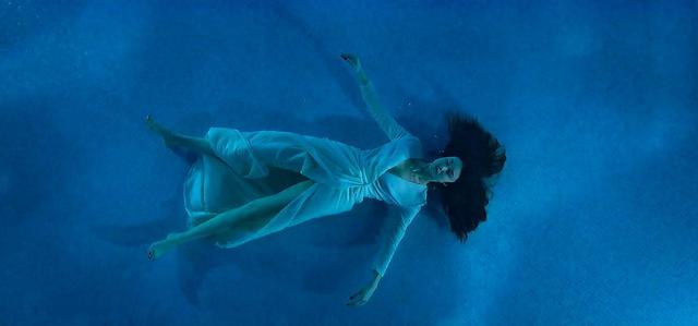 只见白衣女子来到泳池边