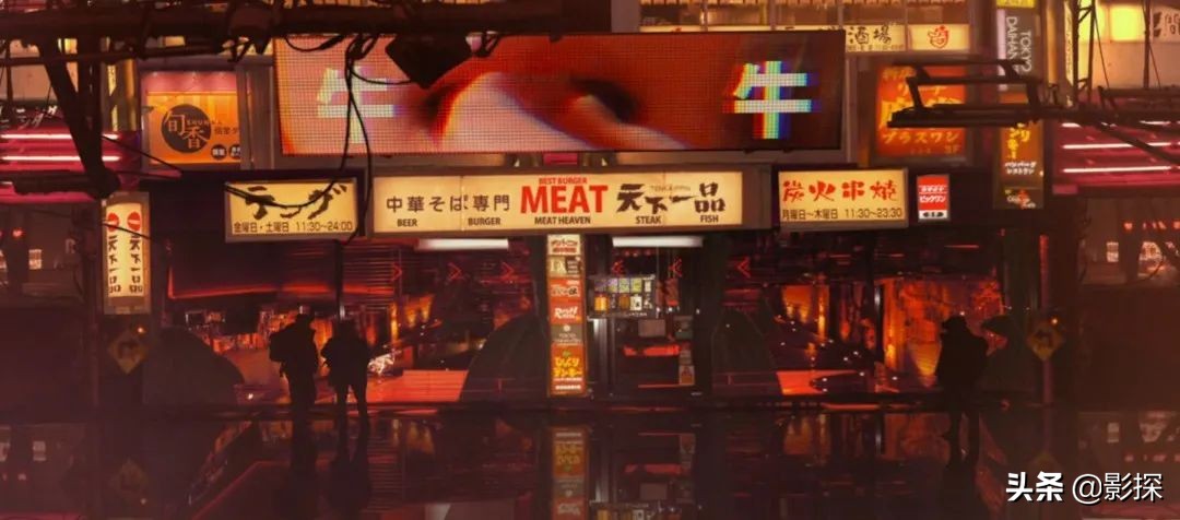 赛博朋克有这么几个经典的视觉元素:夜景、霓虹、雨天、烟雾、巨幅广告。