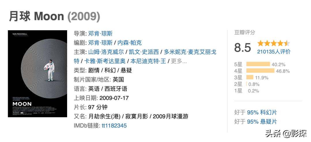 豆瓣超21万人打分,好于95%的科幻片,评分甚至高于科幻神作《银翼杀手》。