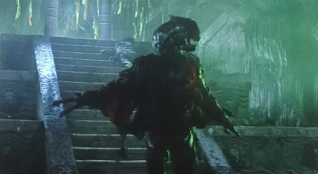 电影最后的重头戏,就是这具僵尸把大巫师吃了,自己从棺材里爬了出来,并且产生了变异。