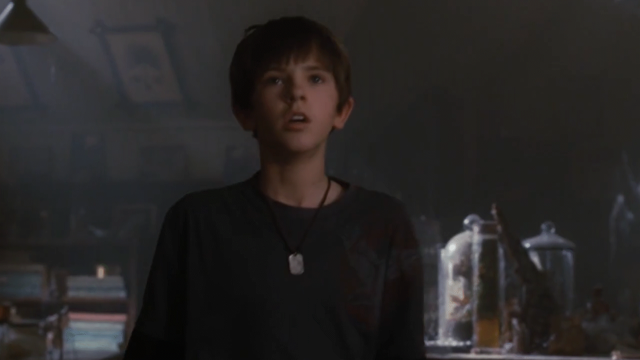 杰瑞却顺着升降梯爬到了隐藏的阁楼,阁楼上挂的正是眼镜男的画像,有个上锁的大箱子,引起了杰瑞的注意,他在箱子发现了一本宝典,突然阁楼的氛围变得怪异,桌上出现了让杰瑞马上离开的警告,杰克害怕极了,赶紧离开阁楼跑去找双胞胎弟弟,可弟弟赛门并不相信他的话,杰瑞悻悻地回到了床上。