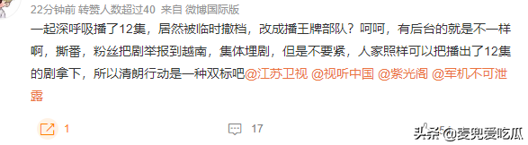 但很快就有网友指出,《一起深呼吸》被换掉的原因,其实是播放数据太差,几个平台的热度都非常低。《王牌部队》一上来,就破了江苏台的两倍收视,网络热度直接领跑第一,《一起深呼吸》被换掉也正常。