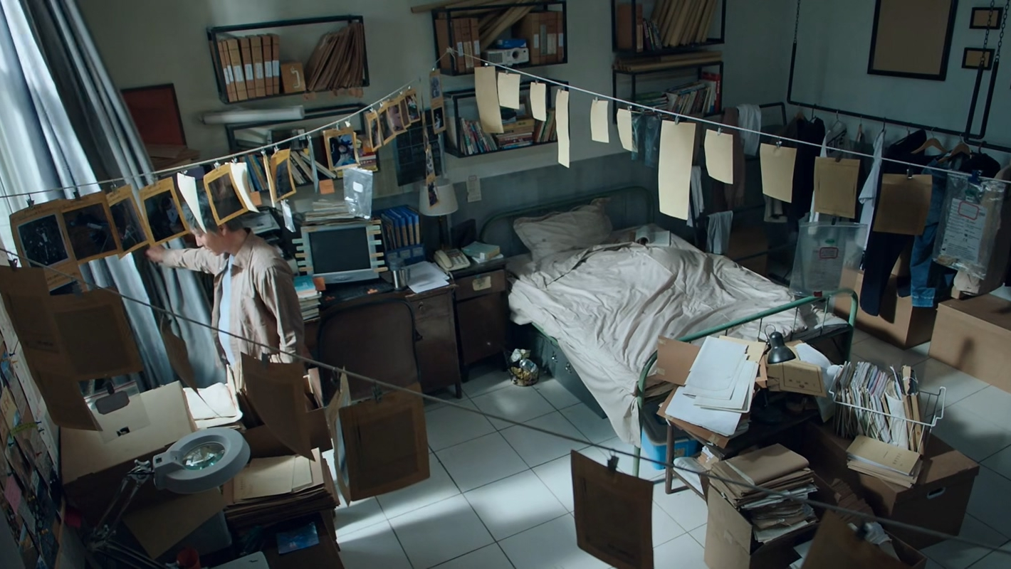 刘警官来到了何晨生前所住的地方,拉开窗帘一看 里面全是凶杀案的资料,桌子上 墙上 甚至挂在了床头。这让他感到十分悲伤 这么多年来何晨一直没有放弃,而他却辜负了何晨。