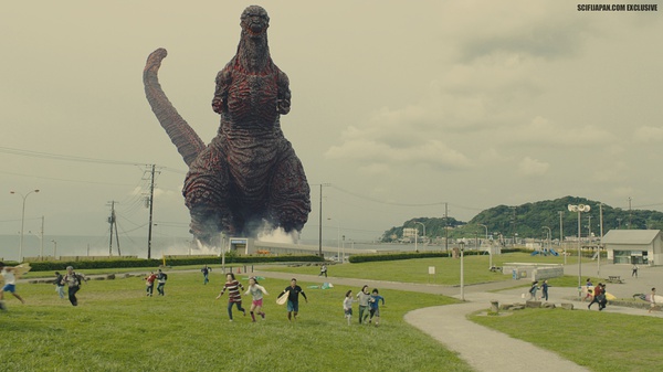 看完电影到现在几乎过去了两天,然而我还沉浸在《新·哥斯拉》的余韵之中,整个人都恍恍惚惚的。《新·哥斯拉》区别于寻常怪兽灾难片的最大特点,是其彻底地摈弃了对逃难的普通人的描写,没有一点煽情的生离死别的桥段。导演不是通过渲染悲惨的场面、调动观众情感来激发“热”的恐惧,而是推动观众思考从而达到“冷”的恐惧。观众所感知到的恐惧不是来源于怪兽的破坏力及与之对比的人类个体的渺小无力,而是来源于“人类的(政治)文明究竟能否拯救人类”这个终极设问。
