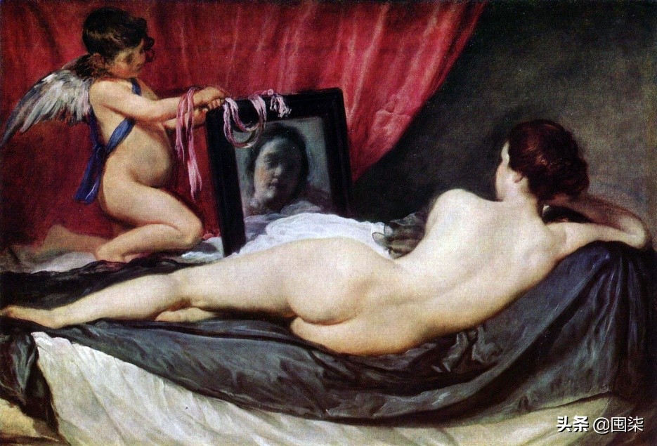 还有,另外一幅画:明显恶搞了17世纪西班牙最伟大的画家委拉斯开兹的画作《镜前的维纳斯》,画中的维纳斯变成了女校长camilla。