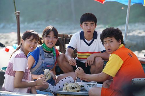 剧照中的d.o和金所炫皮肤晒得黝黑,服装也颇为乡土,十足1991年住在全罗南道高兴郡的范实和秀玉的模样。
