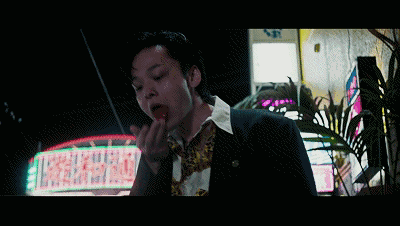 他带着“黑帮宇宙”的杀气,还在白石和弥导演的电影《孤狼之血》里,冲到敌对地盘把仇家耳朵活活咬下来。