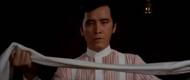 张彻的偏心,再次显现,对于姜大卫的形象,那个塑造。一如既往裹了一层又一层,长衫加围巾,一露面就器宇不凡,然后到了打架的时候,先摘了围巾,再脱了长袍,相比其他角色脱一层就直接露肉,但姜大卫不行,他是咖,不可以露肉,于是长衫里还有衬衫背带,你以为这就完了,不!衬衫破了里面还有背心,甚至到死连领口都不肯松一松。