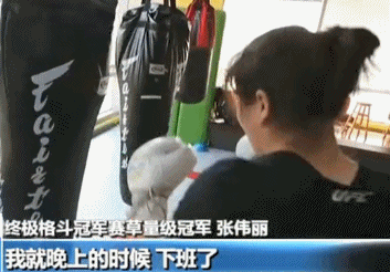 张伟丽便一边工作,一边看女子格斗的训练。