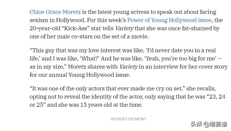 对此,在后来的采访里,莫瑞兹也透露,在她15岁的时候,因为身材已经开始走样,被一位大她10岁的男演员嘲笑,该男明星表示: