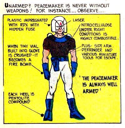 " 和平使者没有任何超能力,饰演和平使者的演员约翰塞纳,可能在能力上都要比他强悍。但他有一套超级战斗服,配备了各种小工具和武器。乍一看,这活脱脱就是一个头戴马桶圈的蝙蝠侠啊。