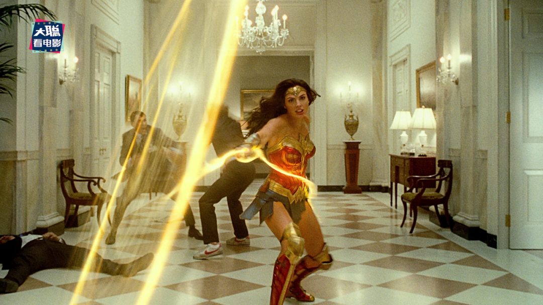时间来到1984年,影片用了大量篇幅,去展现黛安娜在成为神奇女侠后英雄时代,如何隐藏自己和帮助人类,成为比隔壁家蜘蛛侠社区守卫,还要范围大一点的华盛顿dc守护者。