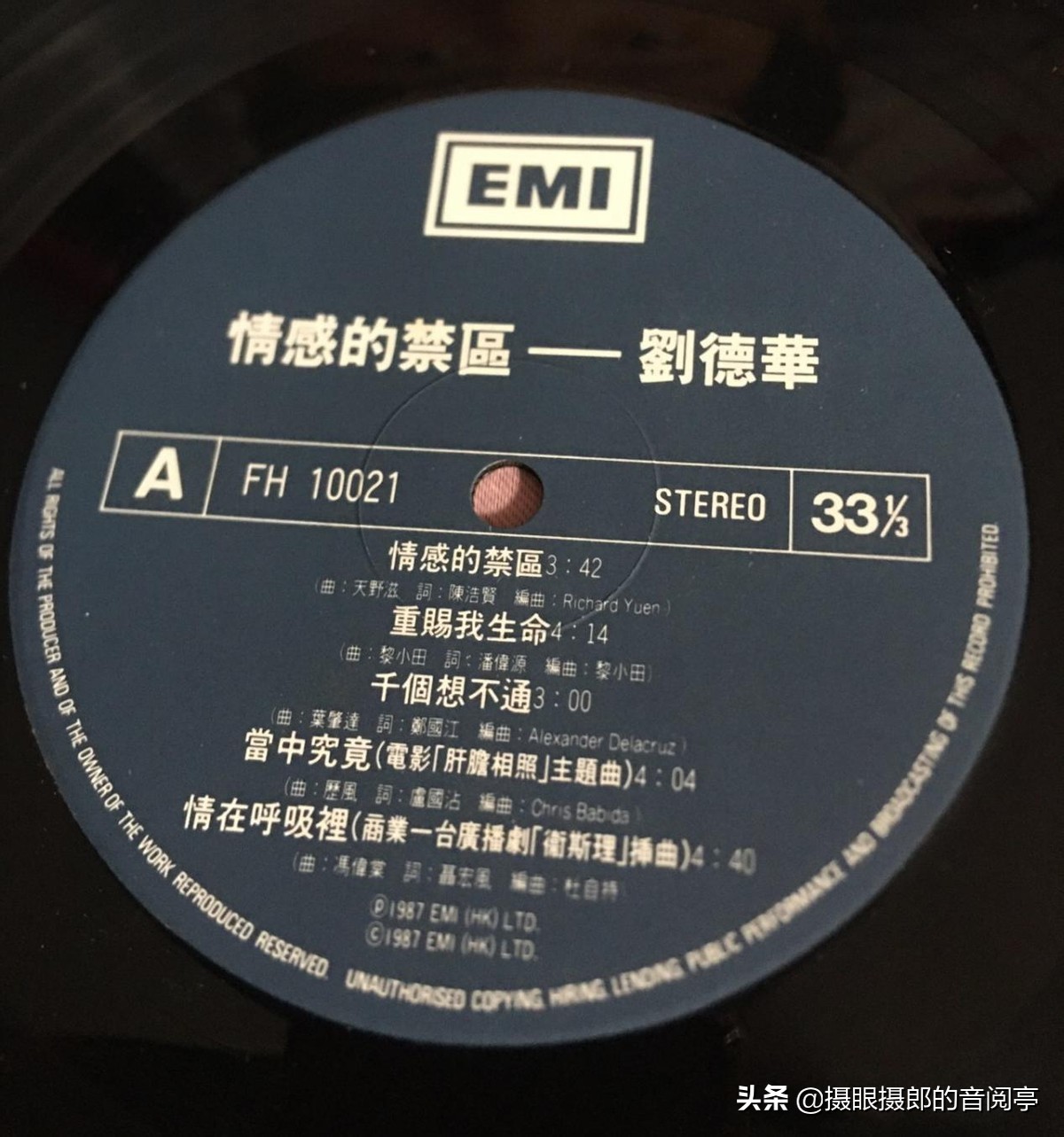 这是华仔的第二张个人大碟,也是加盟emi的首张碟。论唱腔实在是非常幼嫩,但却胜在努力,也为华仔日后成为四大天王的一个良好基础。主打歌"情感的禁区"节奏轻快,歌词意景优美,是一首非常容易上口兼容易入脑。而华仔最擅长的激昂歌曲,在此碟也有略见初型的"当中究竟",这首是电影"肝胆相照"的主题曲,配合华仔在电影里的英雄形象,是颇为杀食。说开电影歌曲,还有"中国最后一个太监"主题曲"错觉" ,此首歌旋律优美,很能配合电影中主角的那份无奈。其他慢歌选择还有"情在呼吸里"及由谭咏麟作曲,小美填词的"下雨晚上"。这首歌旋律动听,歌词意景又非适合一个伤心失意人收听。无怪乎alan在94年"梦幻的笑容"大碟内作翻唱。