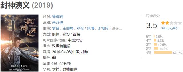 目前王丽坤罗晋版《封神演义》正在播出,魔改的剧情遭到吐槽,豆瓣评分只有3.5,这是预定年度最差剧集嘛,说句实话,新版和傅艺伟、温碧霞版本实在不能相比,如果说还有哪一点值得称赞的话,应该就是于和伟的逗比姜子牙了,承包了所有的笑点。说到古装神话剧的话,tvb以前有过不少经典,与其看豆瓣只有3.5分的《封神演义》,倒不如回顾tvb以前的神话剧。