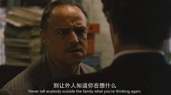 这也是老教父全片唯一一次动怒,并说出了一句著名的台词。“永远不要让别人知道你心里在想什么!”