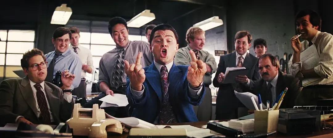 《狼》从黑帮电影中获得线索,展示了贝尔福特如何从卑微的出身,变得富有和臭名昭著(这个标题来自一份引起联邦检察官注意的不讨好的杂志简介)。这位反向罗宾汉为自己建立了一个由快乐的人组成的团队,这些人来自他生活的各个角落。所有人都有名字和达蒙·鲁尼恩式的昵称:罗比·范伯格,又名“大头针”(布莱恩·萨卡),奥尔登·库普费尔伯格,又名“海獭”(亨利·泽布罗夫斯基),可怕的超速行驶“rugrat”尼基·科斯柯夫(p.j .伯恩),“堕落的中国佬”切斯特·明(肯尼斯·崔),以及布拉德·博德尼克(乔·博恩瑟),一个德尼罗式的鲁莽邻居,被称为海湾之王。他的办公室执行者是他的火山爸爸(罗伯·莱纳饰),他大声抱怨支出和工作场所的肮脏,但似乎经常通过交易大厅的年轻狼来替代。
