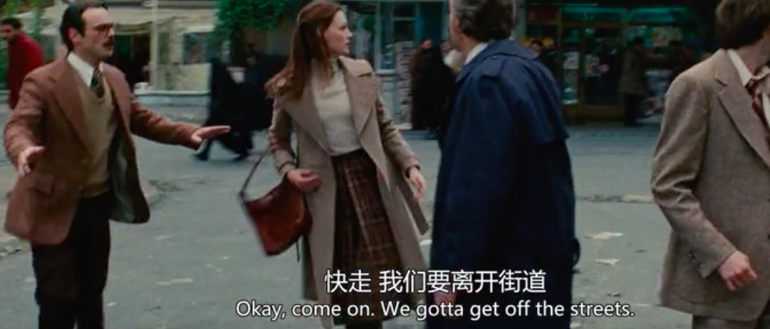 此外,多样化的拍摄手法起到了举足轻重的作用。例如,在拍摄伊朗的画面时晃动的手提摄像机体现出了人群中的暴乱与气氛的紧张。客观镜头的使用也增强了效果:在呈现伊朗军和使馆人员产生冲突的部分,导演采用监控摄像头的客观视角,给观众十足的真实存在感,让观众深陷其中。