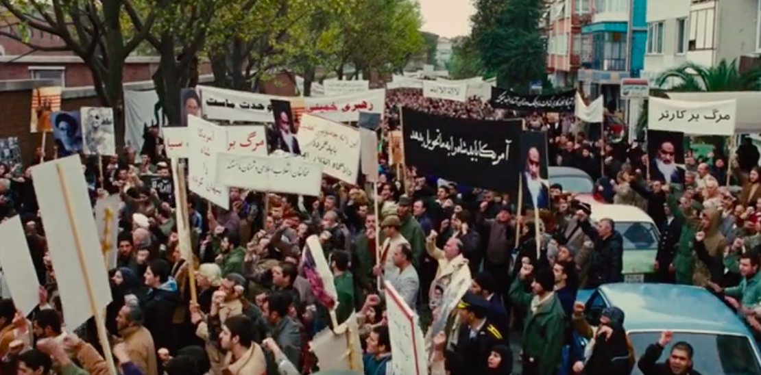 导演本.阿弗莱克说:我尝试在伊斯坦布尔找到200位群众演员来拍摄这一 幕。凌晨1:00,演员穿上戏装,拿上标语牌并学习好波斯语口号。最难的是演员要一直保持这样的状态直到开机拍摄。