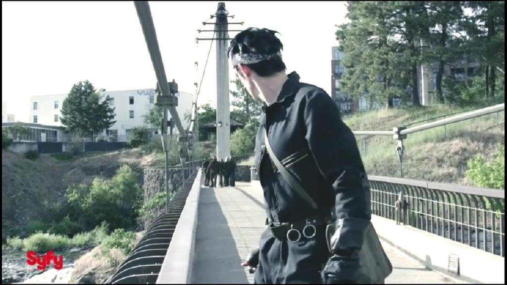 一万被追堵在一座桥上,面对一边是僵尸,一边是混种人的夹击