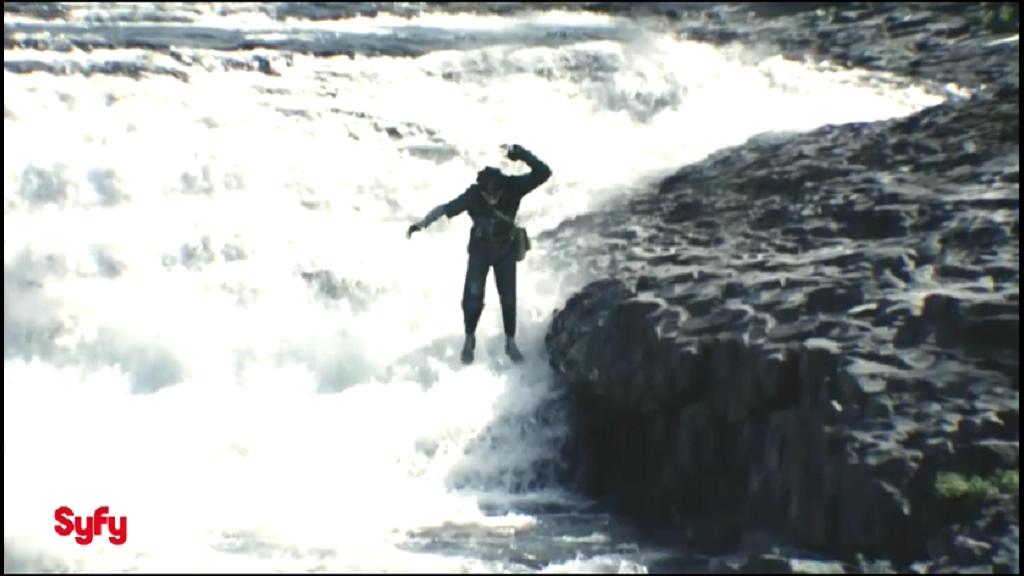 走投无路的一万只好选择跳入水中。