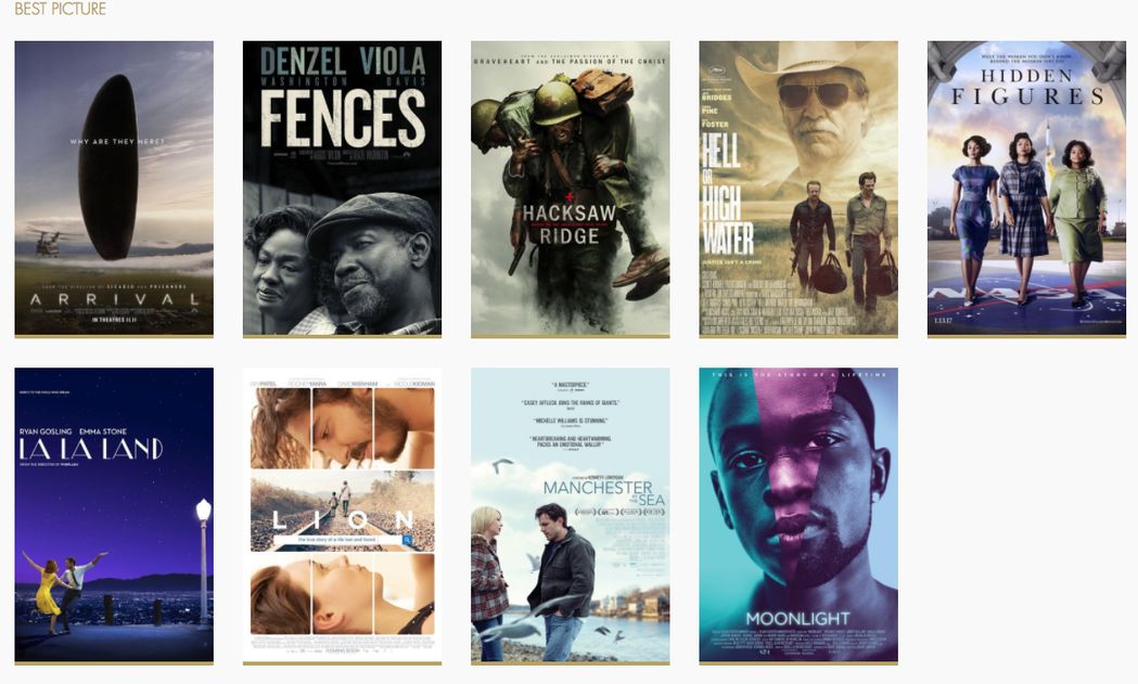 而去年入围的奥斯卡9部最佳入围影片,女性为主角的只有三部,分别是《爱乐之城》,《隐藏人物》,《降临》。而且《爱乐之城》是男女主角比例比较均衡的戏。