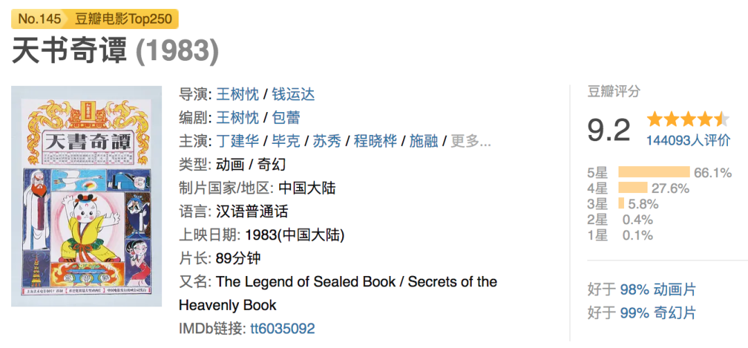 这部动画电影由王树忱、钱运达导演,包蕾、王树忱编剧,吴应炬配乐,柯明担任造型设计,曾在电视台上播放过无数次,豆瓣评分也高达9.2分,早已成为了中国几代人心中的动画神作。