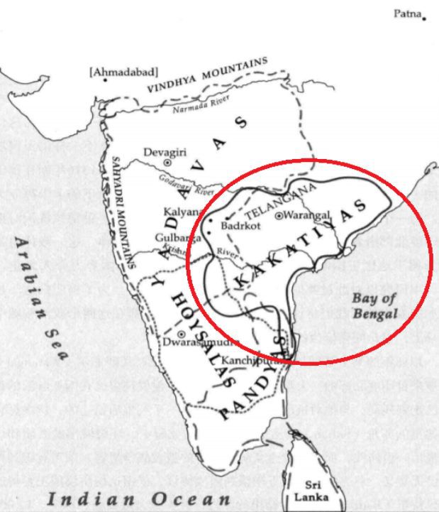 安得拉邦位于印度德干高原东南方,是卡卡提亚王朝的主要控制区。卡卡提亚王朝先祖曾经担任过南印度大帝国罗湿陀罗拘陀王朝的军人,并在950年的一场战斗中英勇殉国,因此卡卡提亚家族在当时贫瘠的德干高原上获得了一小块封地,这成为了卡卡提亚这个在印度教中等而下之的家族起家的开始。11世纪前的德干高原虽然面积广大,但内陆十分贫瘠,与沿海的工商业贸易城市相比可谓云泥之别,大部分土地上人烟稀少,主要居民是牧民或是游耕者。但是卡卡提亚家族居住的特仑甘纳地区的地貌非常有利于建造水库或“蓄水池" 。通过建立简单的石头或泥巴堤来引取高原上靠雨水补给的河水,可以建立起初步的灌溉系统,把土地变得能够长期耕种。卡卡提亚家族是水利方面的能手。据估计,卡卡提亚的首陀罗农民武士们共修建了约5000座蓄水池,大部分到今天仍在使用。现代安得拉邦最大的两个水库也是由卡卡提亚部落首领修建的。这样的蓄水池形成了新型经济的基础,引导牧民和游耕者逐渐进入一个以农耕为主的社会,人口也开始增长和流入安得拉地区,这些新兴的农民属于首陀罗种姓,并为同为首陀罗种姓的卡卡提亚家族崛起打下坚定的基石。