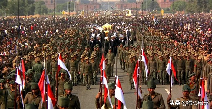 流畅的叙事,优美的摄影和配乐,有充分理由让这片子获得55届奥斯卡。影片也看到甘地封神的过程,印度人神性思维使得甘地成功,但同时甘地的一切也被模仿,简朴、绝食、纺纱也就因此成为印度人模仿对象,一个神性太强的国家,自然也就受困于宗教因素中,分裂与仇杀也源于宗教,所以个人崇拜、神性崇拜并以此作为生活的主体,这也可视为前现代的产物,这也是印度至今仍然贫困的一个不可忽视的原因。
