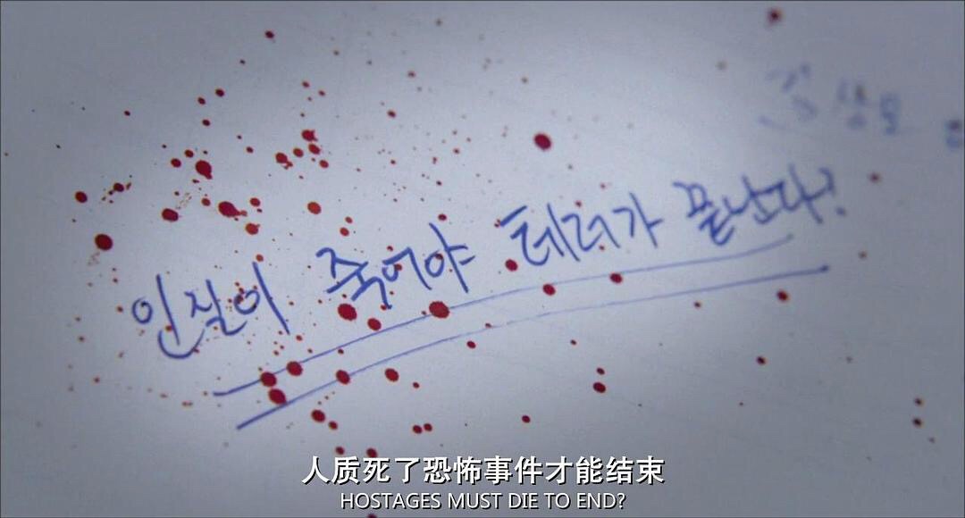 再来说说这个恐怖分子想要的究竟是什么:一个道歉。但这个道歉的人必须得是韩国总统,一次次的耐心等待,一次次地拖延,一直到最后,总统都不曾现身演播厅—其实总统从一开始就压根儿没打算来。一直的拖延,除了导致更多的悲剧产生以外再无其他作用,大韩民国的总统又怎能轻易向一个恐怖分子妥协呢?正是清楚明白这一点,到演播室一起进行直播连线的官员最后才被炸的那么惨。