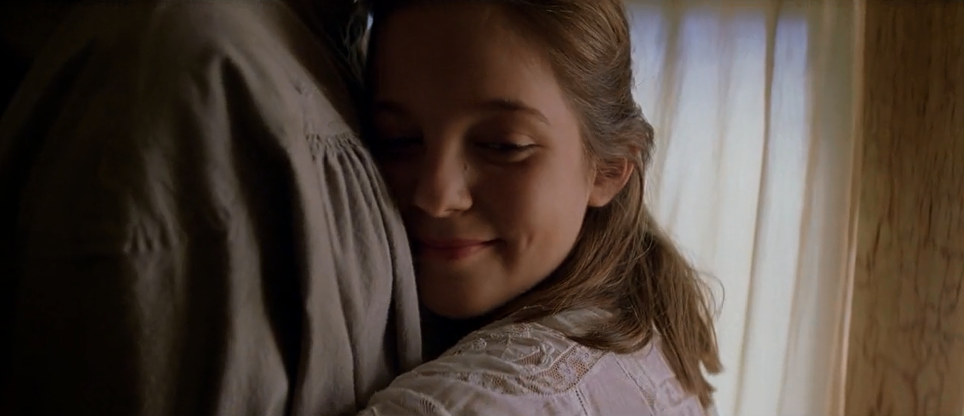 而在《细细的红线》中,导演似乎刻意减缓影片的叙事节奏。除了多次出现的战场空镜头,另外就是无处不在的闪回。电影中的列兵贝尔,常常陷入与妻子的甜蜜回忆中。他与妻子的亲昵,没有对白,只有缓慢的镜头,就像一条静静流淌的小河。