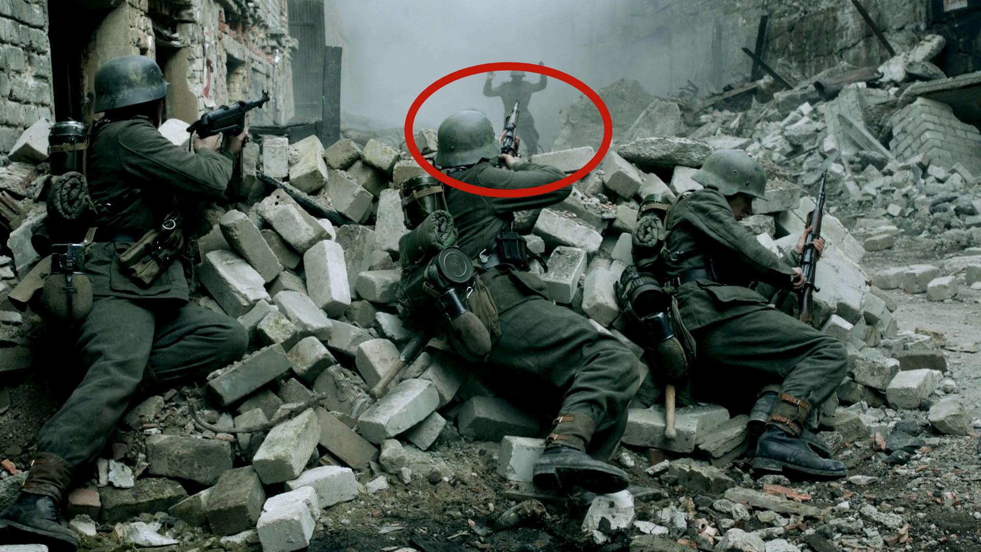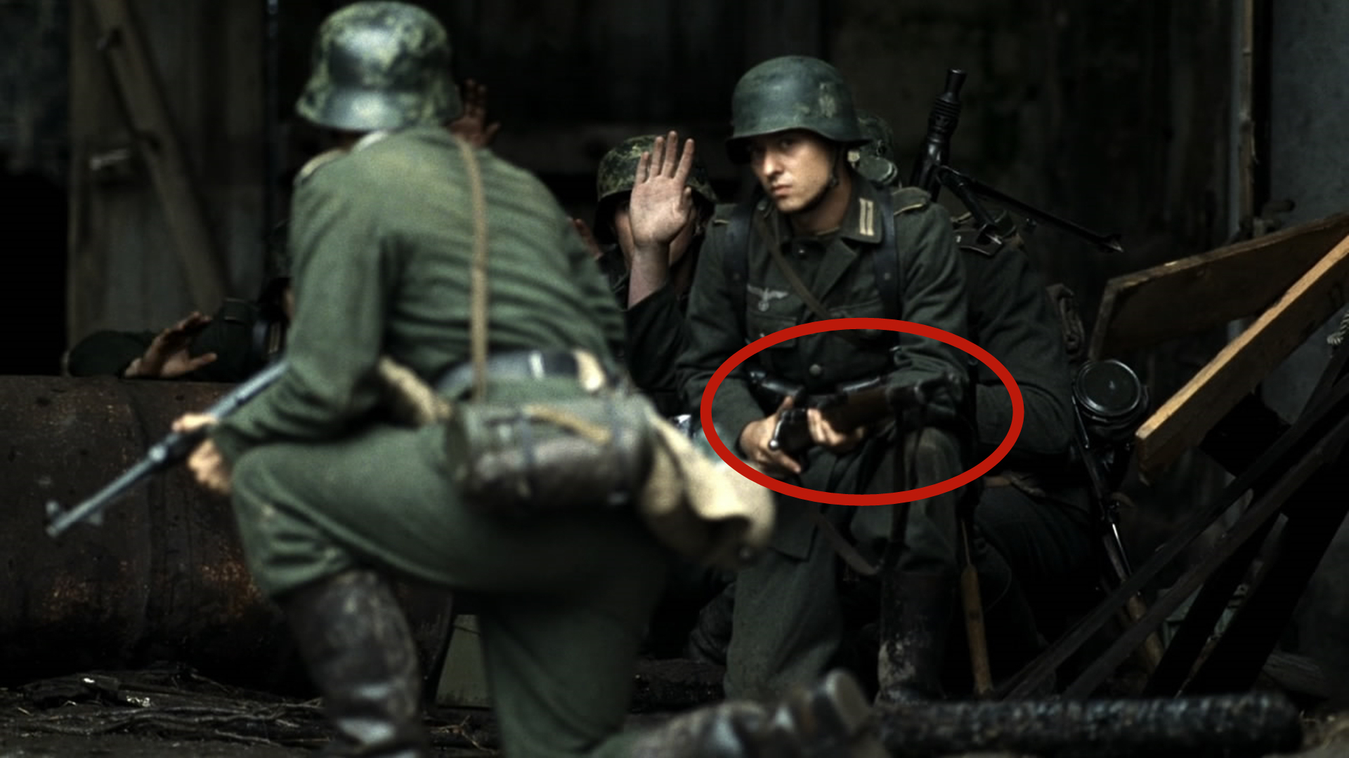 这里大家可能不太清楚一件事情,就是早期的德国步兵班编制是13人一个班的,但后来,德军发现在作战中,一个班的兵力过多,导致作战指挥效能太低,所以,到了《我们的父辈》的时间线时,编制从13人压缩到了10人,这也是为什么剧中的主角威廉会使用一把冲锋枪的原因。