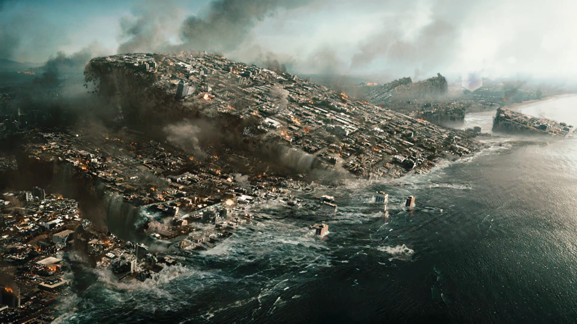第三个矛盾就是距离太远了。于是很自然地要安排很多的艰难困苦,阻碍男主来到中国登船。男主好不容易找到一架飞机,结果飞行员在地震中死了。找来个临时飞行员,结果历经千辛万苦把飞机飞起来,发现整个城市都被淹没了。