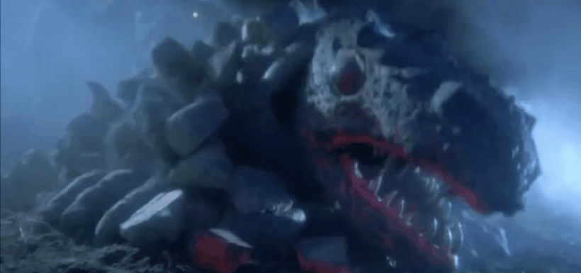 突然窜起的巨兽,几乎占满画幅,形成压迫感。