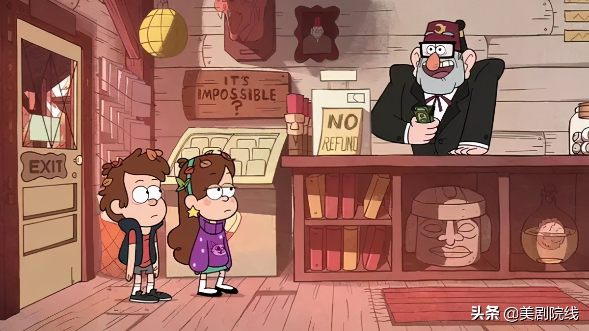 在这里,他们的斯坦叔公经营着一家专门敲诈游客的旅游景点「神秘小屋」,其中有着各种各样稀奇古怪的东西。