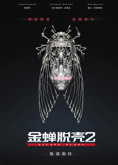 《金蝉脱壳2》海报选择“蝉”作为画面主体的想法就颇具巧思,是《三十六计》兵法中脱困大计的象征,从海报就可以明显看出本片主打的是中国市场,不懂中国成语的外国人恐怕很难理解“蝉蜕”与“越狱”的关联。其中机械蝉钛合金质感的外壳,象征着此次“冥府”监狱也充满科技金属质感。机械蝉的腹部是机器人头部,眼睛射出一排红外射线,在美国版预告片中也出现了机器人的镜头,机器人用射线在黄晓明脸上制造了伤口。