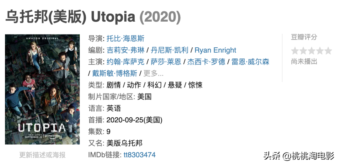记得当初《乌托邦》的英版,我还挺喜欢的,这回,折腾这么久的美版,也终于来了。我记得当初还传过大卫·芬奇要执导,不过,现在的导演则是“神夏”的导演托比·海恩斯。