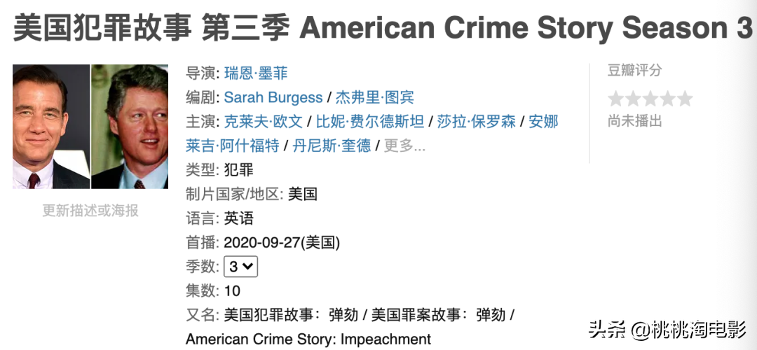 瑞恩墨菲的《美国犯罪故事》第三季也要来了,继续关注名人罪案故事。而这一季要讲的则是,比尔·克林顿的性丑闻,阵容你们自己感受下吧。