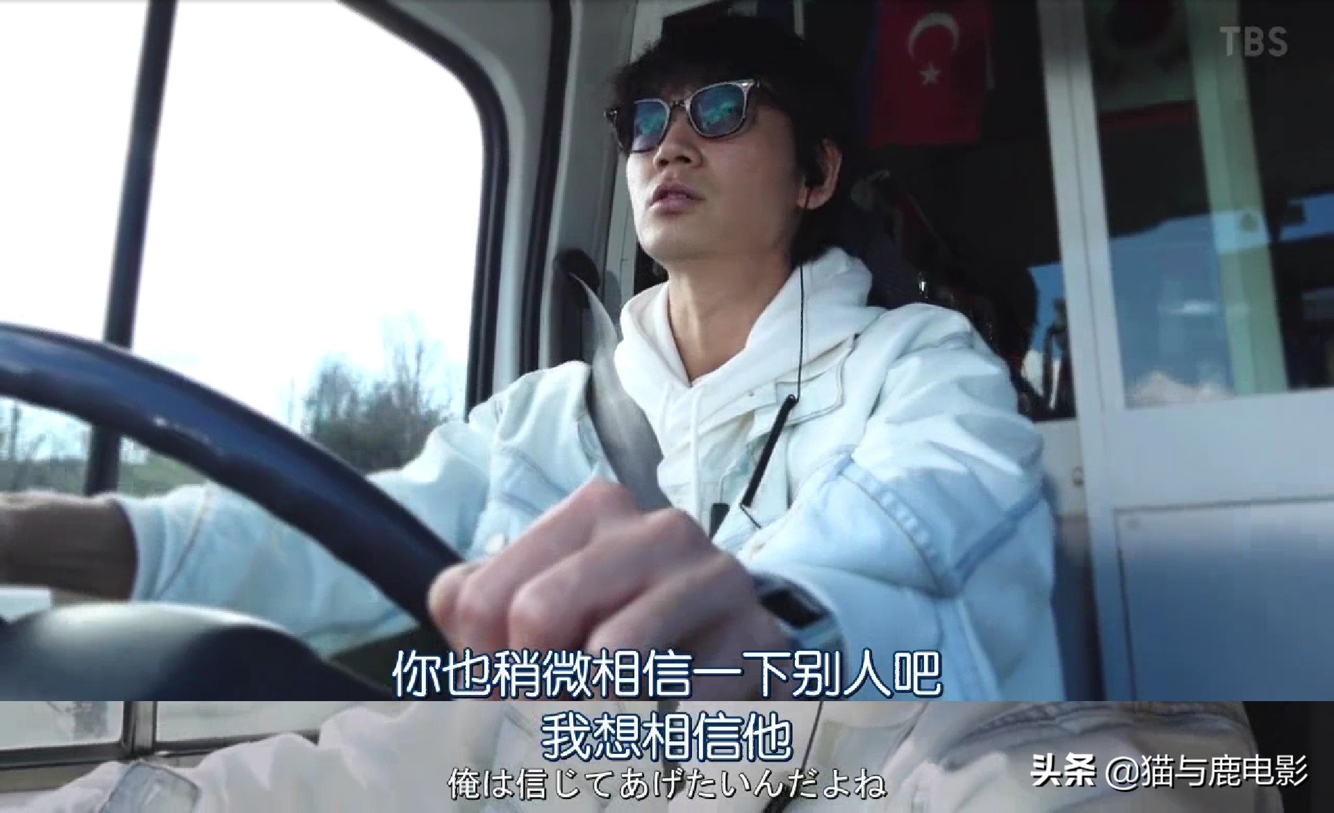路过一个路口的时候,志摩假装他们车辆后备箱夹着东西过去提醒,趁机放入了窃听器。随后他们尾随在后面听着他们谈话。
