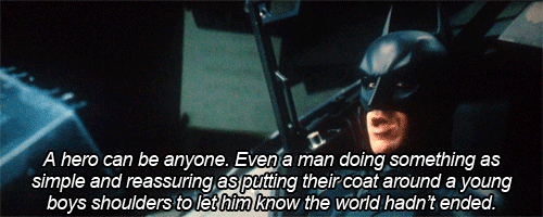 就像蝙蝠侠所说:“每个人都可以是英雄,哪怕只是给一个小男孩披上外套,让他知道他的人生还有无限可能。”