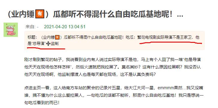 根据该爆料网友上传的证据,是一位业内人士邝保威的社交账号对话截图,从该对话中可以得出的信息是王家卫是监制,电视剧不是由他拍的,是另外一位导演。