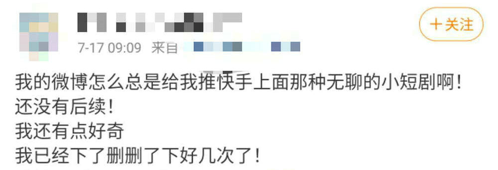 如今在微博上有不少网友调侃:万万没想到,有一天我会在快手上追剧。或许在未来,随着短剧行业逐渐完善,这样的调侃能够变为由衷的感叹。